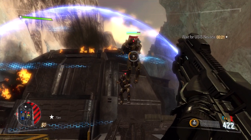 Of course there are countermeasures to all of these mobility aids: a savvy enemy conquest team will drop AA guns everywhere, corralling enemy dropship reinforcements toward set areas. The game features a slow-recharging lock-on system which lets players glue their target reticule to an enemy player – no matter how high or fast they go. It only lasts a few moments but it can be enough to stop a wounded target escaping.