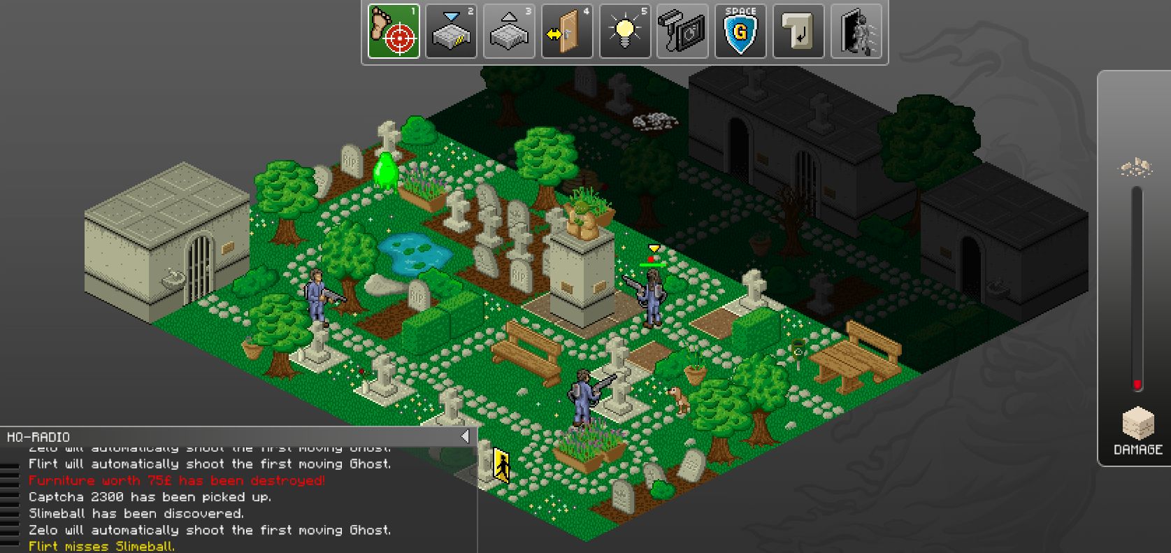 Play starts off simply enough with a basic overarching objective, some simple in-game instructions, and a UI that if not intuitive by modern usability standards is at least familiar to anyone versed in the games that inspired GhostControl. You’re soon thrown into a tactical mission, wherein your starting ghost hunter tracks down a single weak poltergeist, and introduced to your anti-spook ordnance and ghost traps.